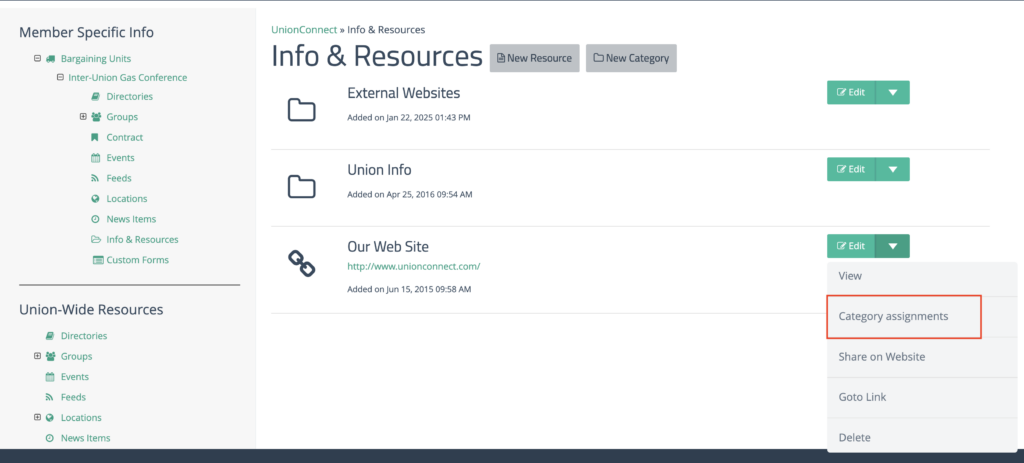 If you add something to the Info & Resources section within a bargaining unit it will display in the My Info & Resources section of the app. If you were to add something to the Info & Resources section union-wide, it will appear under the My Union section of the app.