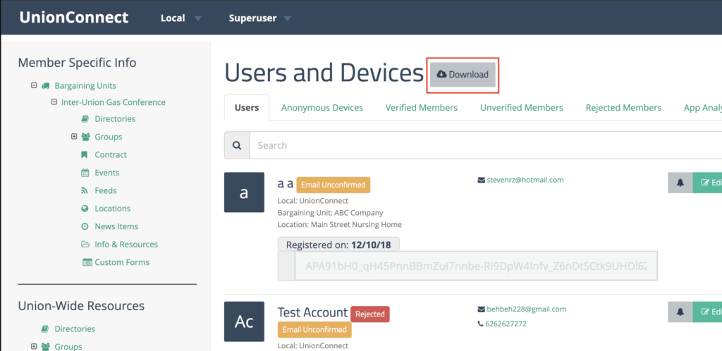 - Click Download Users: